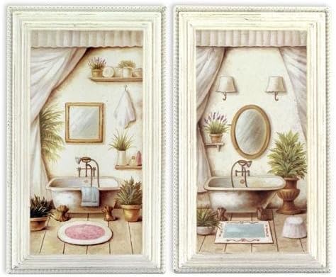 Set 2 Quadri Bagno Stampa Su Legno Vasca Da Bagno Retro Lavandino